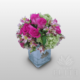 9 ROSAS, BASE CUADRADA ALTA DE CRISTAL ROSA Y ASTROMERIAS BASE CRISTAL